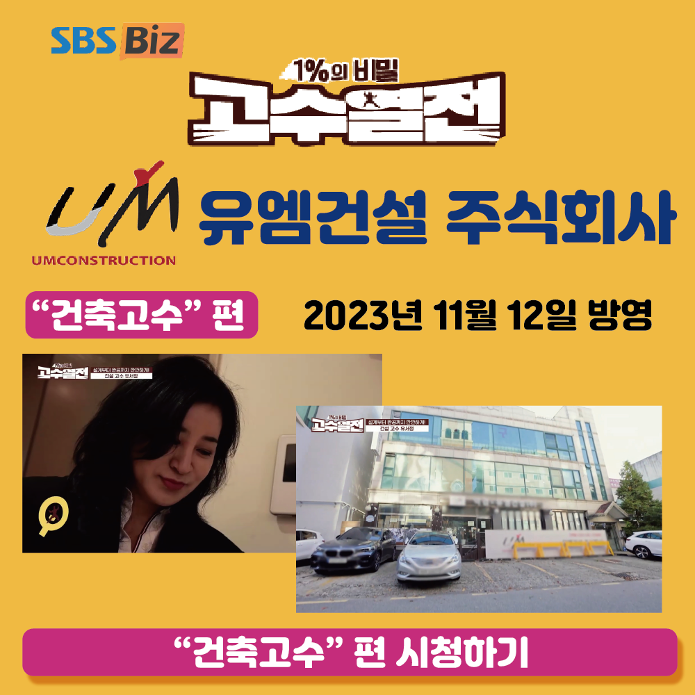 SBS biz – 1% 비밀 고수열전 유엠건설 주식회사 “건축고수”편 방영