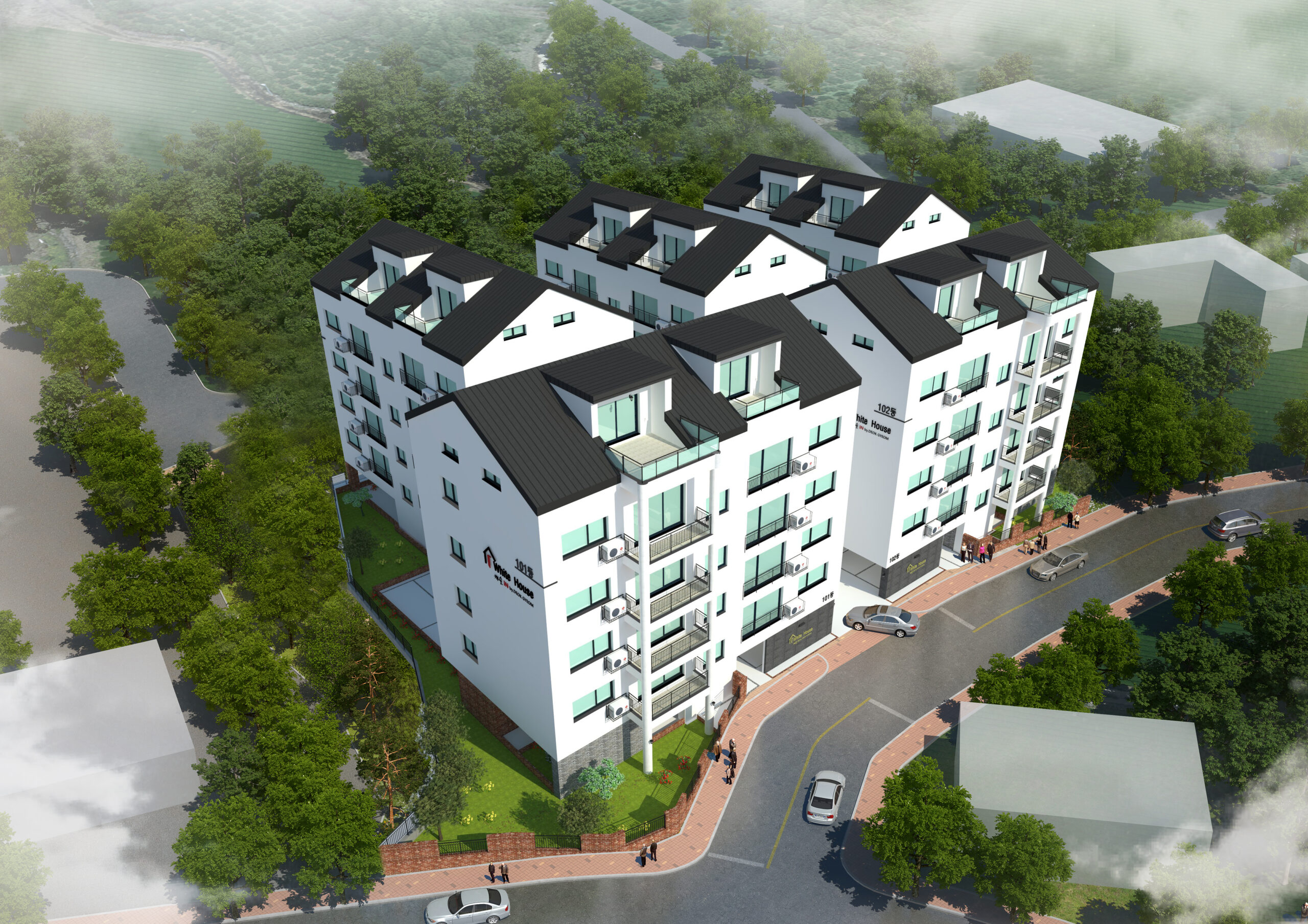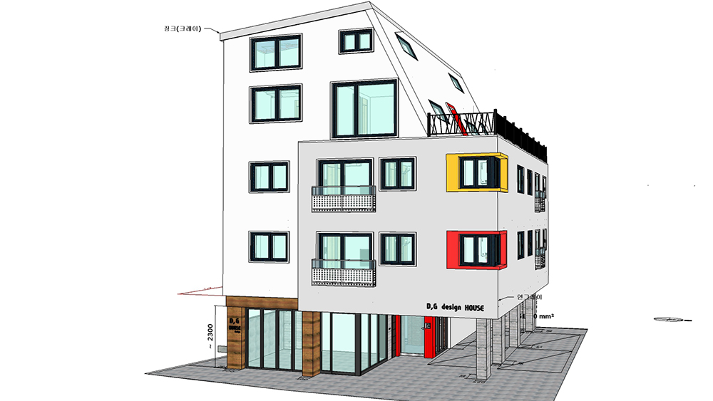 HOUSE PLAN 대지면적 : 211.80㎡(65.37평)연면적 : 393.38㎡(121.41평) 공 범 : 철근콘크리트조건물규모 : 1층(근린생활공간),2~3층(2~3룸)층(다락),4층(3룸 다락2룸)외벽마감 :…